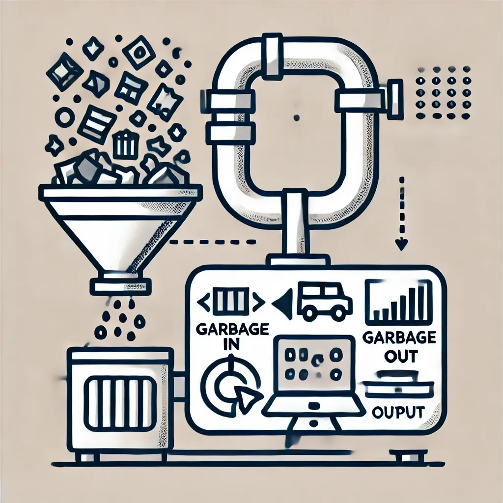 "Garbage in, garbage out" (GIGO) とは、コンピュータ科学や情報処理の分野で使われる表現です。これは、入力データが不正確または質の低いものであれば、出力データも不正確または質の低いものになるという意味です。システムやアルゴリズムは入力に依存して動作するため、入力が正確でなければ、どんなに優れたシステムでも正確な結果を出せません。この原則はデータの品質管理の重要性を強調しています。